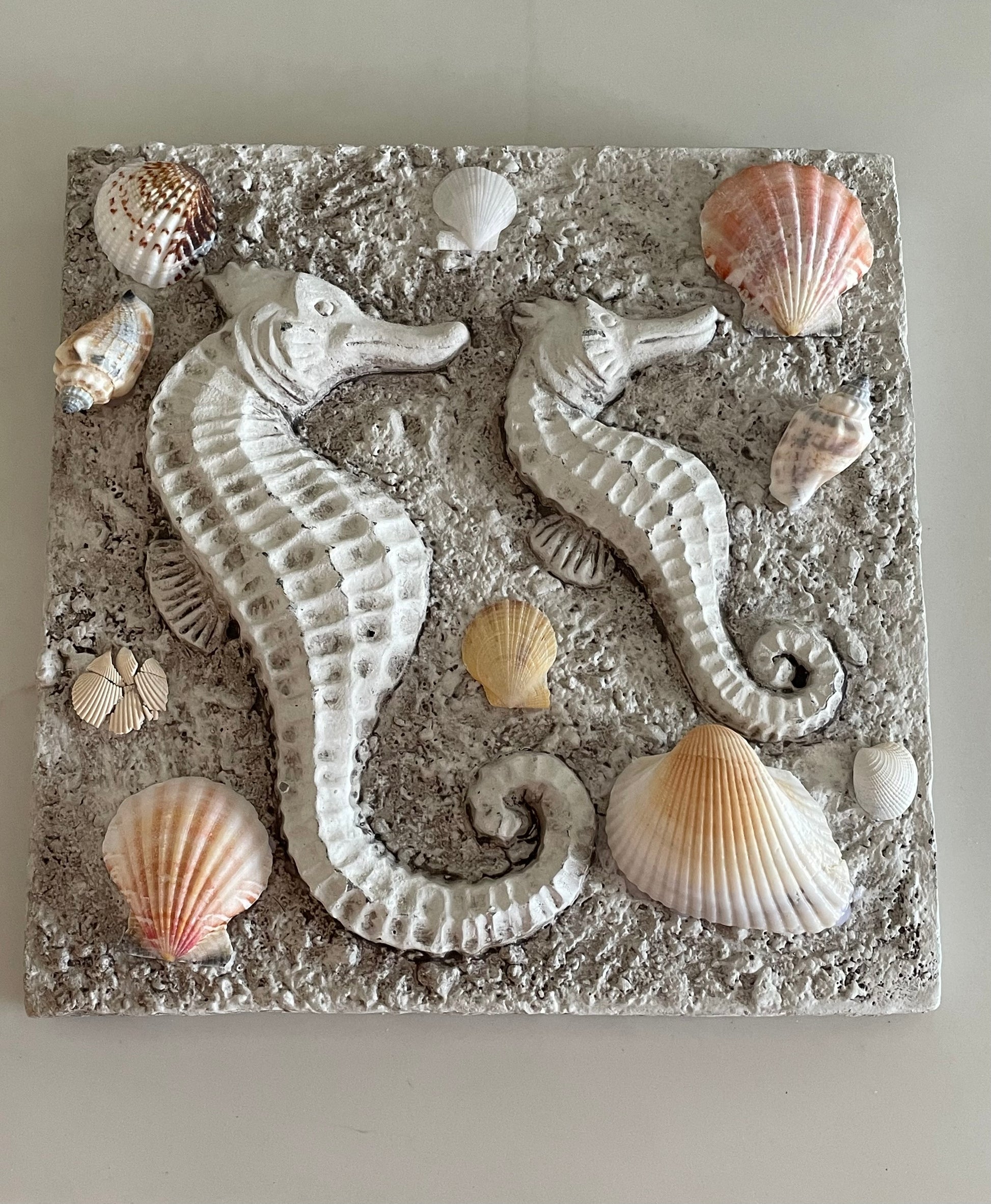 Sea shells mounted on plaque with sea horse details 🧜🏻♀️